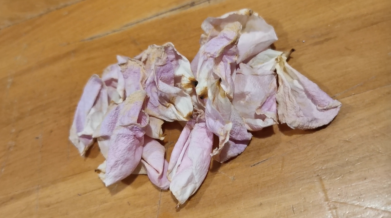 I recorded the sound of eighteen rose petals falling and made a short grungy base track on loop: