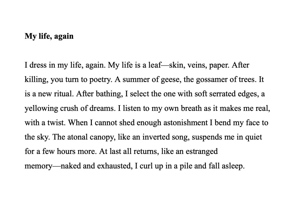 On a related note, a prose poem called ‘The new lives of my children’ was published on NZ Poetry Shelf in August 2023. The poem emerged from my ‘listening practice’ as well.
